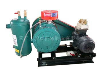 回轉(zhuǎn)式鼓風(fēng)機(jī)結(jié)構(gòu)精巧,鼓風(fēng)機(jī)壓力范圍:0.1-0.5kgf/CM2。主要由下列六部分組成:電機(jī)、空氣過(guò)濾器、鼓風(fēng)機(jī)本機(jī)、空氣室、底座(兼油箱)、滴油嘴。鼓風(fēng)機(jī)靠氣缸內(nèi)偏置的轉(zhuǎn)子偏心運(yùn)轉(zhuǎn),并使轉(zhuǎn)子槽中的葉片之間的容積變化將空氣吸入、壓縮、吐出。在運(yùn)轉(zhuǎn)中利用鼓風(fēng)機(jī)的壓力差自動(dòng)將潤(rùn)滑油送到滴油嘴,滴入氣缸內(nèi)以減少摩擦及噪聲,同時(shí)可保持汽缸內(nèi)氣體不回流。